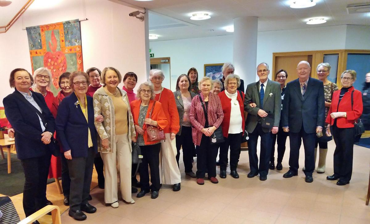 Iloisia Haagan senioreita kokoontuneena yhteiskuvaan ennen itsenäisyyspäivää, nauttimaan Tallen-ravintolan antimista pikkujoulun merkeissä, 5.12.2023